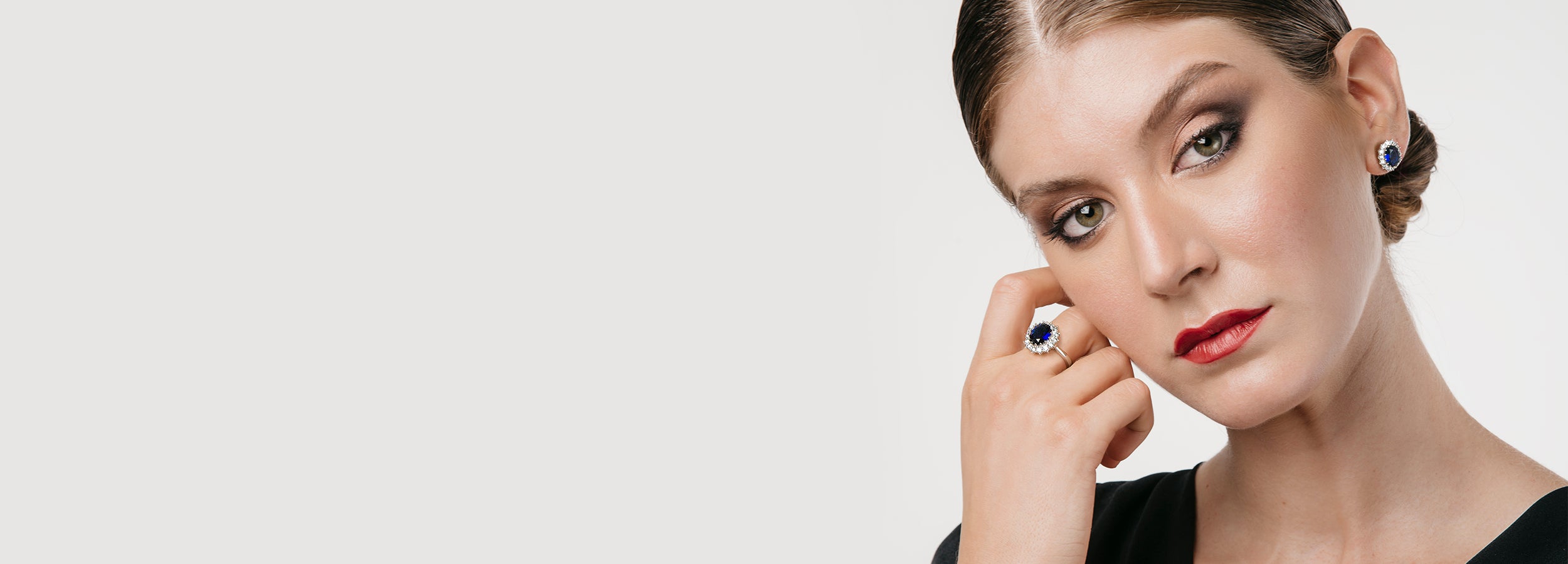 Anillo Petite en plata de ley con Iolita y topacios blancos.